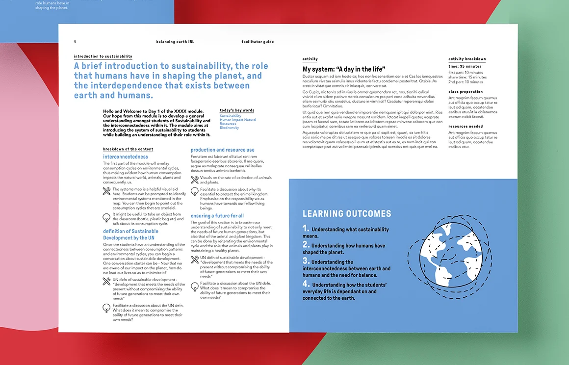 The toolkit introduces high school students to sustainability and as the name suggests, engages them on a personal journey in maintaining the Earth’s Balance ‘in real life’.